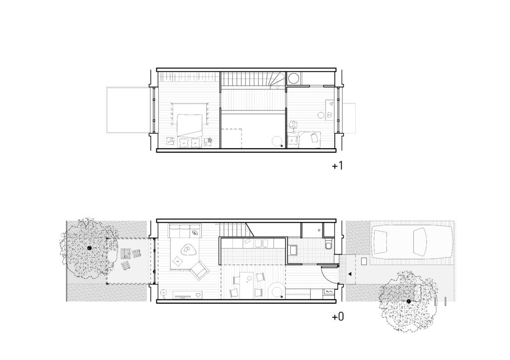 programme 10 logements sociaux dont 8 T3, 1 T2 et 1 T4, conçus comme des maisons sur deux niveaux avec jardin.